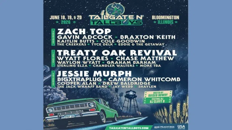 Get ready for all of the fun of Tailgate N' Tallboys Bloomington, IL, June 18, 19, 20 2026! Headliners and full lineups have been announced! Thursday, June 18th - Zach Top with Gavin Adkock, Braxton Keith, Kaitlin Butts, Cole Goodwin, The Creekers, Tyce Delk, Eddie & The Getaway Friday, June 19th - Treaty Oak Festi...