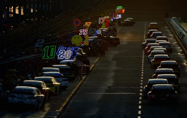HOMESTEAD, FL - NOVEMBER 22: A general view as cars pit during the NASCAR Sprint Cup Series Ford EcoBoost 400 at Homestead-Miami Speedway on November 22, 2015 in Homestead, Florida. (Photo by Robert Laberge/Getty Images)