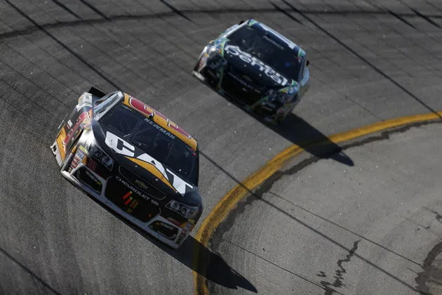 HAMPTON, GA - FEBRUARY 28: Ryan Newman, driver of the #31 Caterpillar Chevrolet, leads Danica Patrick, driver of the #10 Aspen Dental Chevrolet, during the NASCAR Sprint Cup Series Folds of Honor QuikTrip 500 at Atlanta Motor Speedway on February 28, 2016 in Hampton, Georgia. (Photo by Matt Hazlett/Getty Images)