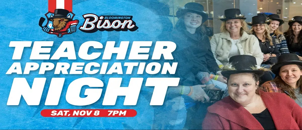 This week you can win tickets to the Bloomington Bison game on Saturday, November November 8th! It's Teacher Appreciation Night and our fabulous local educators will be honored!