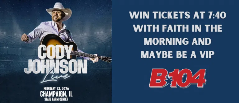 B104 is excited to welcome Cody Johnson to the State Farm Center in Champaign and we've got your chance to win FRONT ROW SEATS!